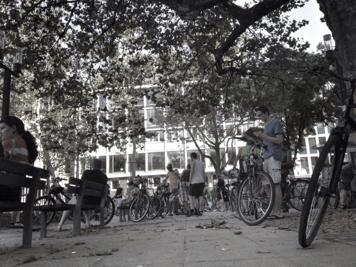 Stuttgart. Erster Freitag im August. Critical Mass. (Noch nie gehört? Dann am besten mal nachlesen in Wikipedia.) Schon die Anfahrt wird zur Hitzeschlacht. Lechz nach Wasser. Die Kessellage tut ein übriges. Halbsieben. Treffpunkt Feuersee. Eine kleine Szene bekanner Gesichter. Ansonsten immer wieder neue Gäste, die die Fahne der Critical-Mass-Stuttgart hochhalten. Das ist gut. Los gehts. Die BummBox, anfänglich Rhythmusgeberin, nimmt sich irgendwann eine Auszeit. Luftmangel. Die Menschen radeln weiter. Stetig. Bergauf und Bergab. Tunnel. Brücken. Bundesstraßen. Teils polizeilich gedrosselt. 17 Kilometer. Ein Traum. Menschen am Straßenrand vermuten eine Demonstration. Bahnhof? Nein – es geht um die Rechte der Radfahrer. Höchste Zeit dafür…