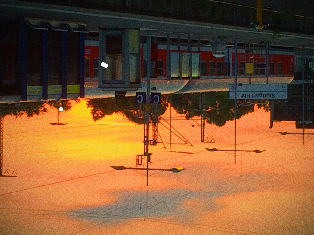 Störend. Stuttgart steht Kopf. Nicht der letzte Sonnenaufgang am Stuttgarter Bahnhof. Ein Kopfbahnhof. Dies wird geändert werden. Tiefer gelegt. Wie früher die Manta’s. Diese sind aus der Mode gekommen. Das tiefer legen nicht. Nicht in Stuttgart. Ehrlicherweise – die Menschen wollen es so. Die Mehrheit wenigstens. Der Bahnreisende wird in 21 Jahren (?) wenn überhaupt nur die Stuttgarter Vororte sehen. Mir gefällt ebenerdig. Sehend in eine Stadt einzufahren. Habe nie einen Hehl daraus gemacht. Einen ersten Eindruck gewinnen. Verträumt aus dem Fenster schauen. Häuser. Plätze. Menschen. Triste Gleislandschaften. Weitläufige Rangierbahnhöfe. Veränderungen. Viele Graffities. Einige Menschen sagen dazu Beschmierungen. Meist Kunstwerke. Vorboten einer Stadt und ihrer Menschen.