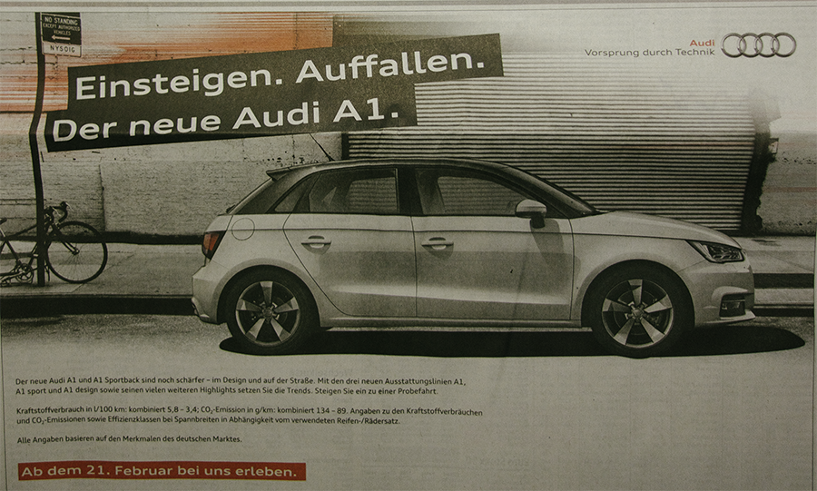 Meine lautet: Selbst wenn es das einzigste Automobil weltweit sein sollte. Mir feilgeboten mit Mörderrabatt oder Lotteriegewinn. In diesen Audi A1 werde ich niemals einsteigen. Und nicht auffallen – schon gar nicht mit einem A1.