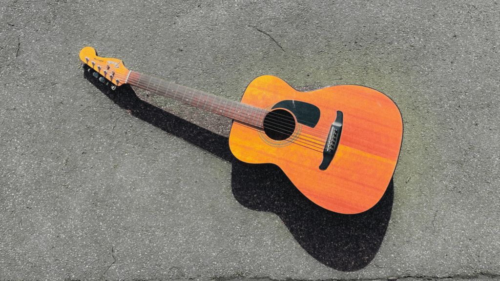 Am letzten Abend fällt die Gitarre auf den Boden. Vom Tisch. Unglücklich. Der Griffhals bricht. Oben bei den Saiten. Zweiteilig.