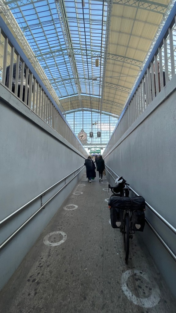 Die Organisation am Bordeaux Saint-Jean, allein der Name klingt heilig, perfekt. Viele Menschen. Treppen und Rampen. Zugang zum Bahnsteig nur über ein Ticket. Ich mag das. Entschleunigung. Neu für mich, der Transport eines Rades unmontiert, d.h. nicht eingepackt auf eine Maximalgröße. Wenn du ein Fahrradticket buchst, hast du automatisch einen Sitzplatz in direkter Nähe. Herr Weselsky, dafür lohnt es sich zu kämpfen. Service.
