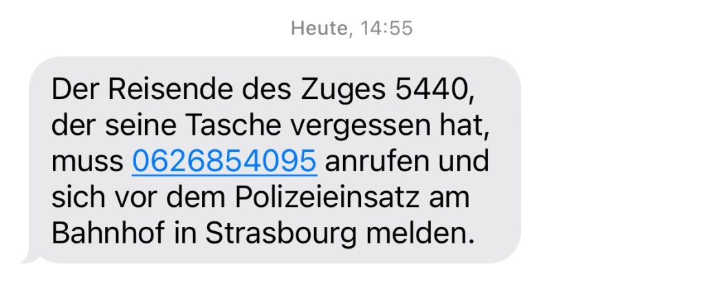 Ich schau nach links. Rechts. Alles dran. Aber irgendwie auch cooler Service. 15 Uhr. Es geht über den Rhein. Zurück in Deutschland. Ich war schon lange nicht mehr so lange weg. Polizisten mit Maschinengewehr im Anschlag steigen in den Zug. Diskussionen. Ruhig. Habe in den ganzen Tagen in Frankreich keinerlei Gendarmerie gesehen. Einzig jede auch noch so kleine Häuseransammlung hat ihre Mairie. Die Bürgermeisterei. Geht wohl auf Napoleon zurück. An einer längeren Rampe überlegte ich mir zum Zeitvertreib die Namen von französischen Präsidenten. Drei waren klar – einen konnte ich nur aussprechen. De Gaulle, Mitterand, Macron und Est‘aing oder so.