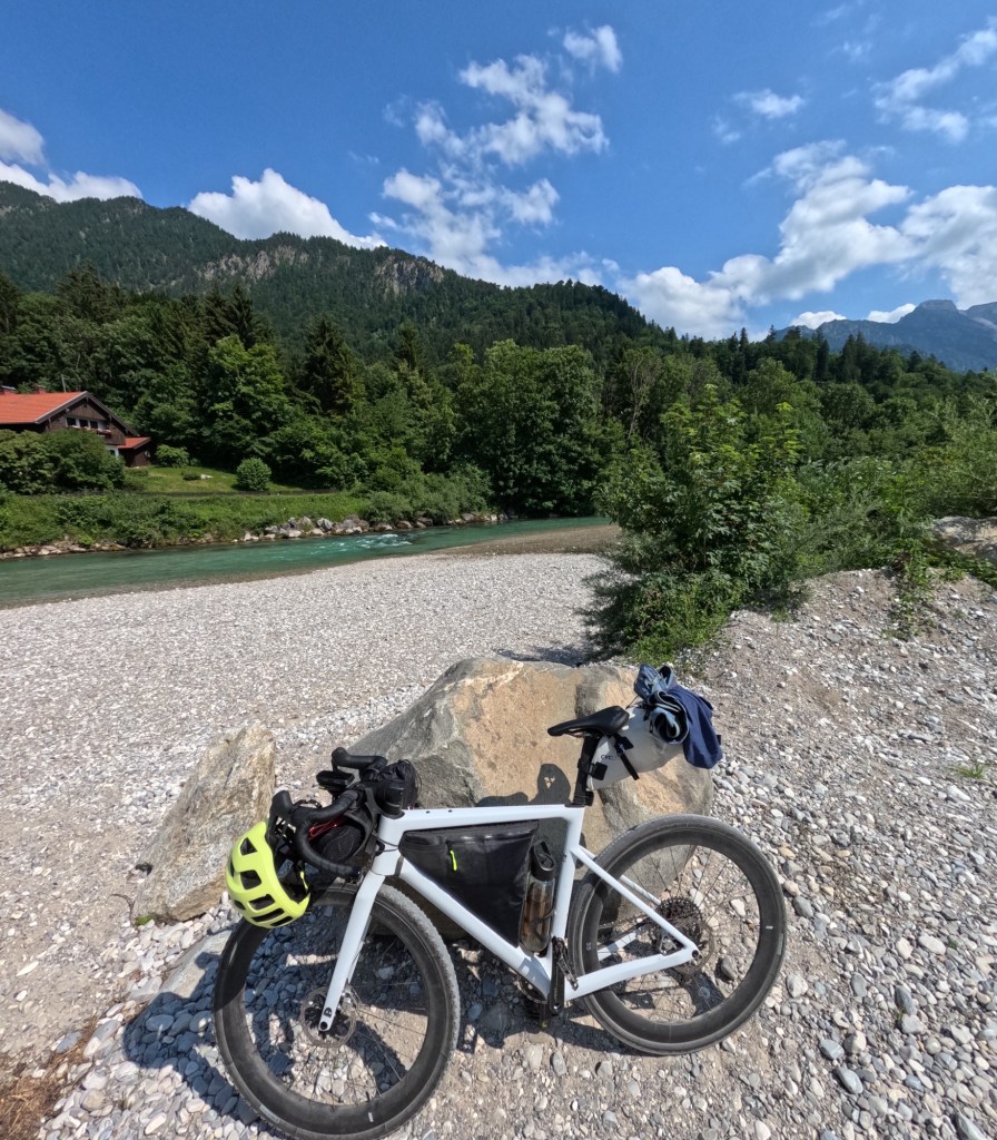 Während der Tour keine großen Gedanken, die des erwähnt-werdens gerecht werden. Viele andere. Lenkt mich ab und verkürzt die Zeit. München gut verlassen. Zug pünktlich. An der Isar die Floße mit Stimmung und Sonnenbrand an Bord. Strecke gut. Rückenwind. Den letzten Anstieg nach Oberammergau gut gemeistert. Kloster Ettal beeindruckend.