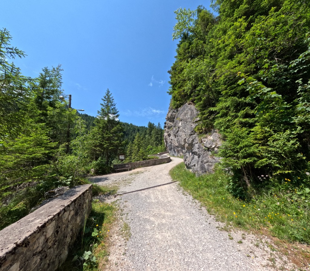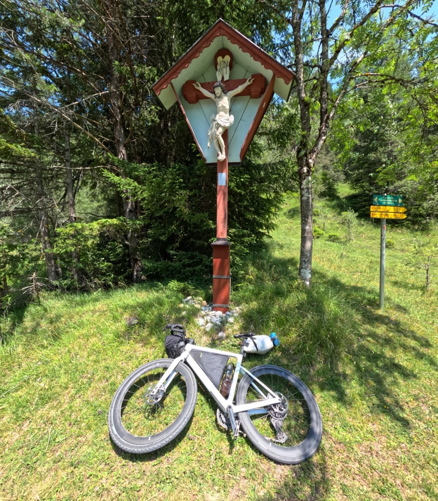 Ich, besser: komoot, wählt die Variante: Alter Gaichtpass. Steil. Steinig. Schieben und Fahren halten sich die Waage. Zum Fluchen fehlte mir die Kraft – doch nicht der Wille. Ich sehe eine Spendenbox für den Erhalt und die Pflege des historischen Weges. Null. Ich spende nichts – nicht aus Trotz, sondern weil ich die Gleichgültigkeit bis in die Knochen fühle.