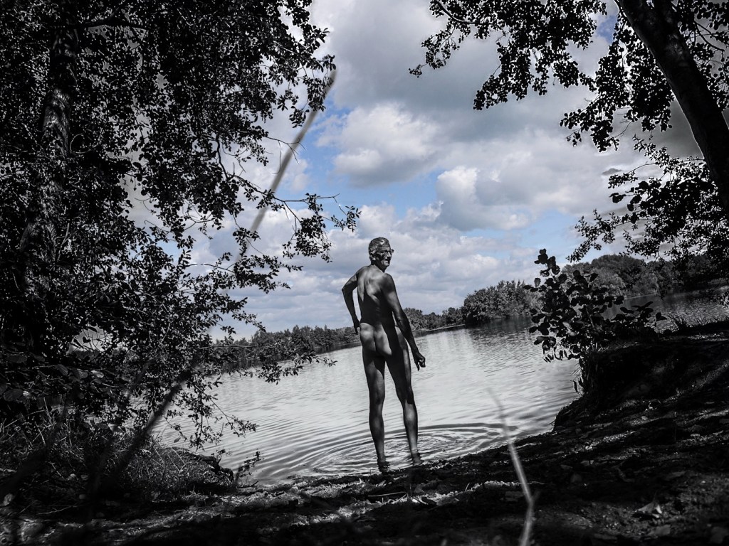 Ein Badesee auf dem Weg wirkt unappetitlich: eine trübe Brühe mit seltsam grünlichem Film am Ufer. Ein See weiter hüpfe ich ins Wasser, eine kurze Erfrischung. Der Zugang ist problemlos, obwohl weiter vorne als Anglersee und Privatgrundstück ausgerufen. Ich liebe dies, gefühlte pure Freiheit. Es ist ein Selfie. Unter Menschen nicht so meines ;-)