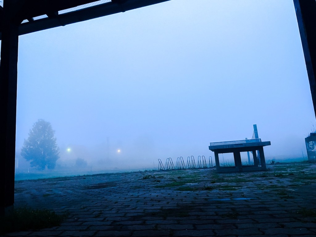 Der Regen des Gewitter heute Nacht hat einen Nebel hinterlassen. Jetzt einen Kaffee. Nicht aus Sucht oder verlangen, sondern weil das ein gewohnter Tages Anfang ist. Love it. Hab einen kleinen Kocher dabei. Zu faul. Ich verlasse mich einfach darauf, dass bald ein Bäcker kommt. Zusammenpacken. In die Gänge kommen ist ein nicht unerheblicher Teil des Reisens. Übrigens mein Nachtlager: Heringen/Helme. Stadtrechte. 4474 Einwohner. Der SV Grünweiß Uthleben e.V. ein Sportverein hat 2 Mitglieder im Gemeinderat. UND: einen REWE-Markt mit Bäcker. Was willst du mehr – ok vielleicht eine Brise Sonne. Die gibt es heute nicht.