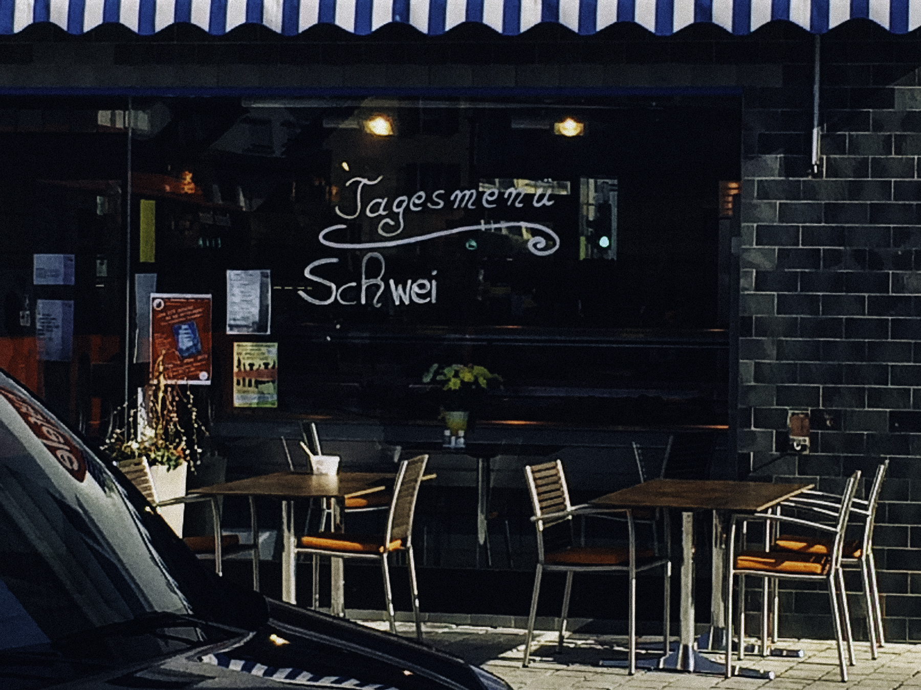 Der Bus ist raus. Die Ampel wird rot. Lastwagen. Blitzer. Der Reifen platt. Von 5 möglichen Schrauben fehlen 3. Der Boden ist stumpf – bremst den Menschen unerwartet. KACKE. Ist dann halt so. Glück gehabt. Andere haben es nicht. Nicht erklärbar. Dankbar.